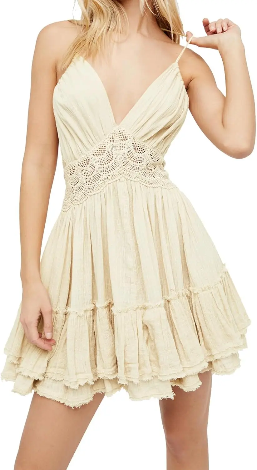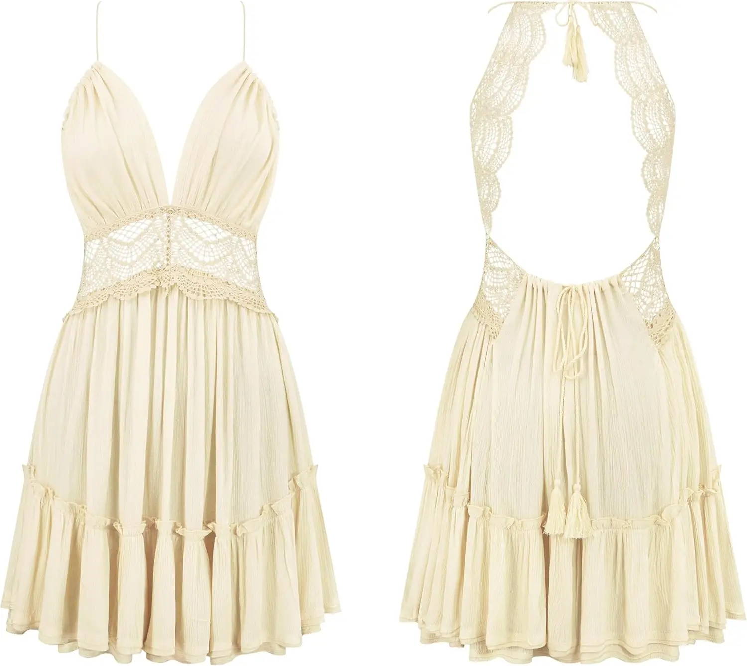 Women's Casual Summer V Neck Backless Beach Dress Chiffon Short Washable Ruffles Natural Waistline Solid Pattern Woven Method